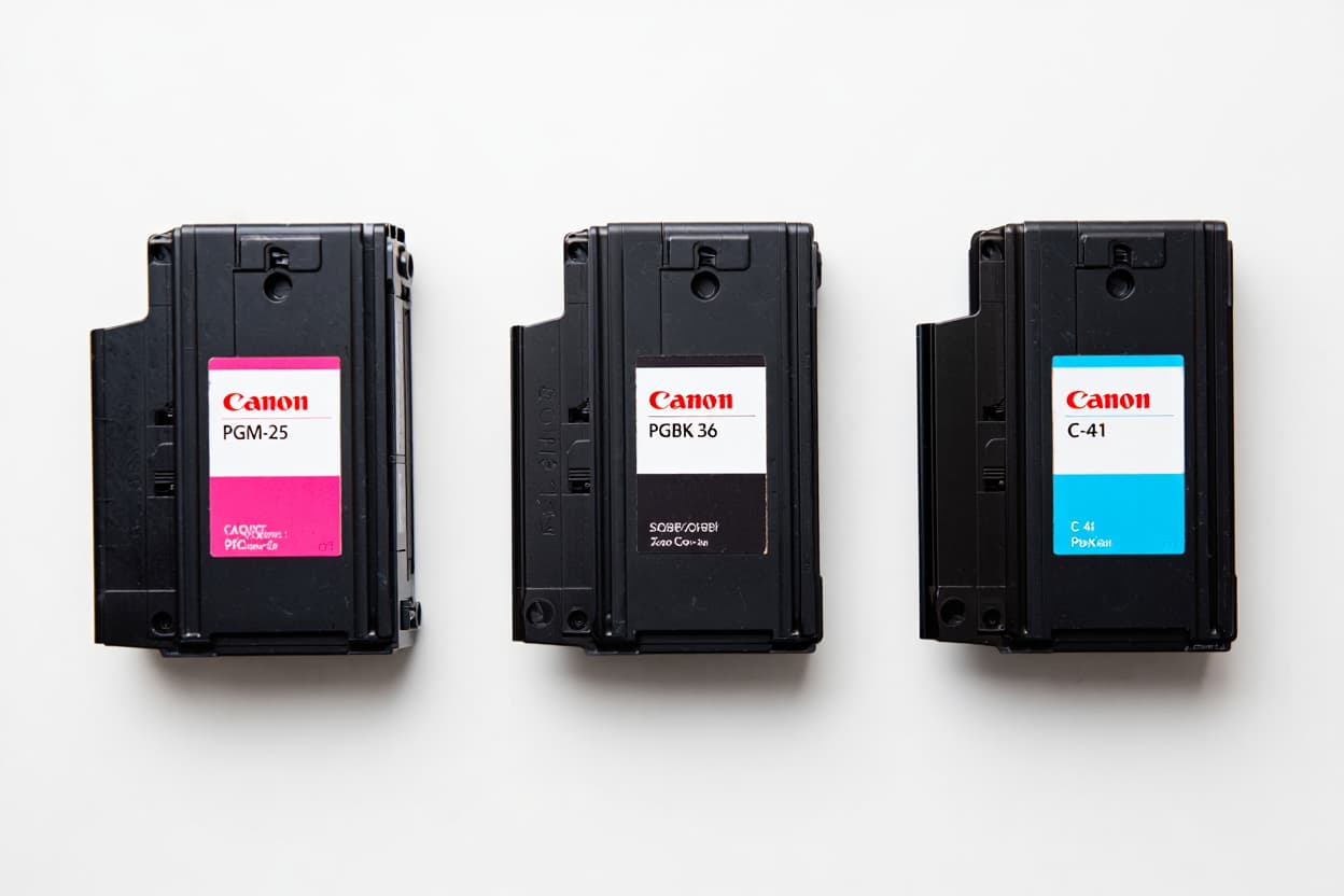 Для струйных Canon серии Pixma часто используются пары: цветной слева, черный справа. Для Maxify популярны линейки PGI-1400, PGI-2400, для домашних Pixma - PG-445, CL-446 и их XL версии, для MG2540s - PG-445 Black и CL-446 Color. Для каждой модели сверяйте номер картриджа в инструкции.