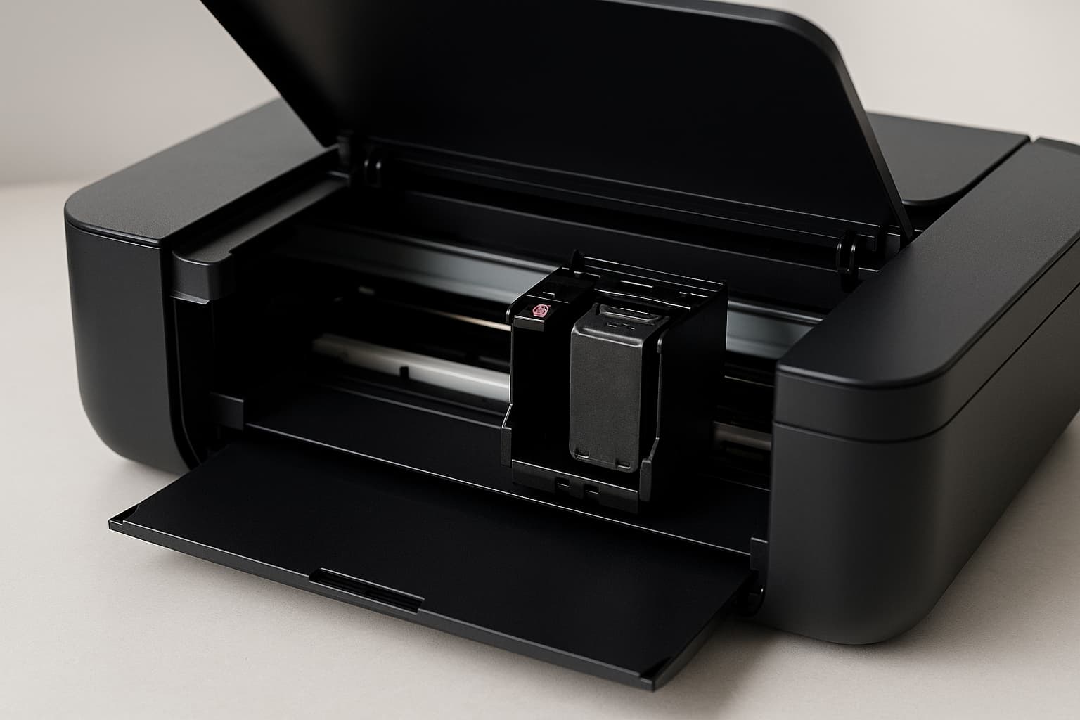Признаки: сообщения о низком уровне чернил, мигание индикатора на панели, ухудшение качества печати, появление пробелов и полос. На струйных моделях Canon держатель картриджей автоматически перемещается в зону замены, когда крышка открыта, на лазерных необходимо открыть фронтальную крышку блока тонера.